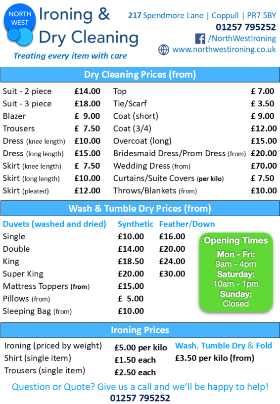 We'll be pleased to provide you with more details about our services. Contact us on the number above, the form below or via our Facebook page.