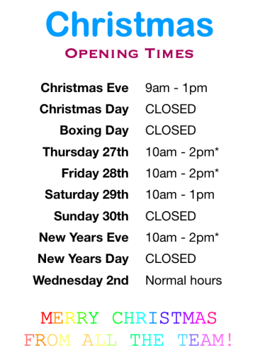 Here are our Christmas opening times over the festive period. As always, we’ll still do our best to help if something crops up for you, so