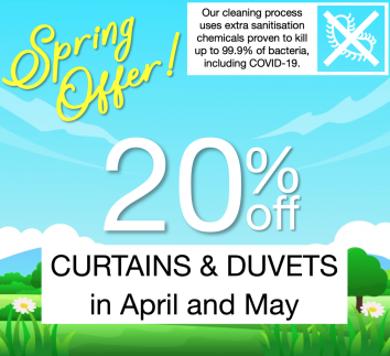We’re offering 20% off ALL curtains and duvets between April and May 2021.